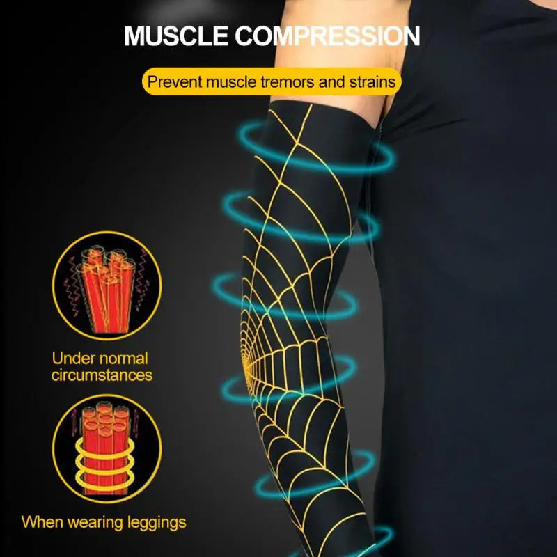 Crafted with meticulous attention to detail, the arm sleeve features a unique spiderweb-inspired pattern that not only adds a touch of edgy flair but also enhances breathability. The intricate web design promotes optimal air circulation, keeping your arm cool and dry even during the most intense activities.