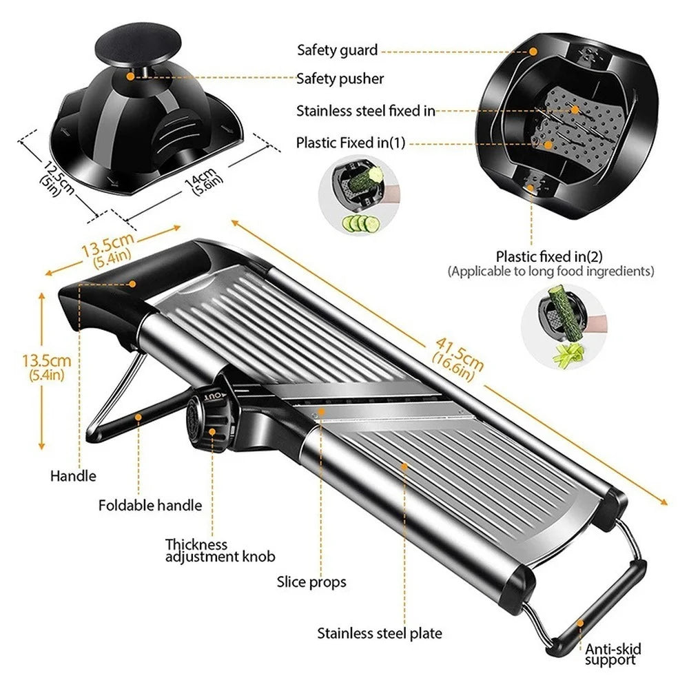 It Can Take the Heat: Count on your dishwasher-safe kitchen slicer to be your dependable kitchen implement for years. Your mandoline slicer is made of tough stainless steel and food-safe plastics.
