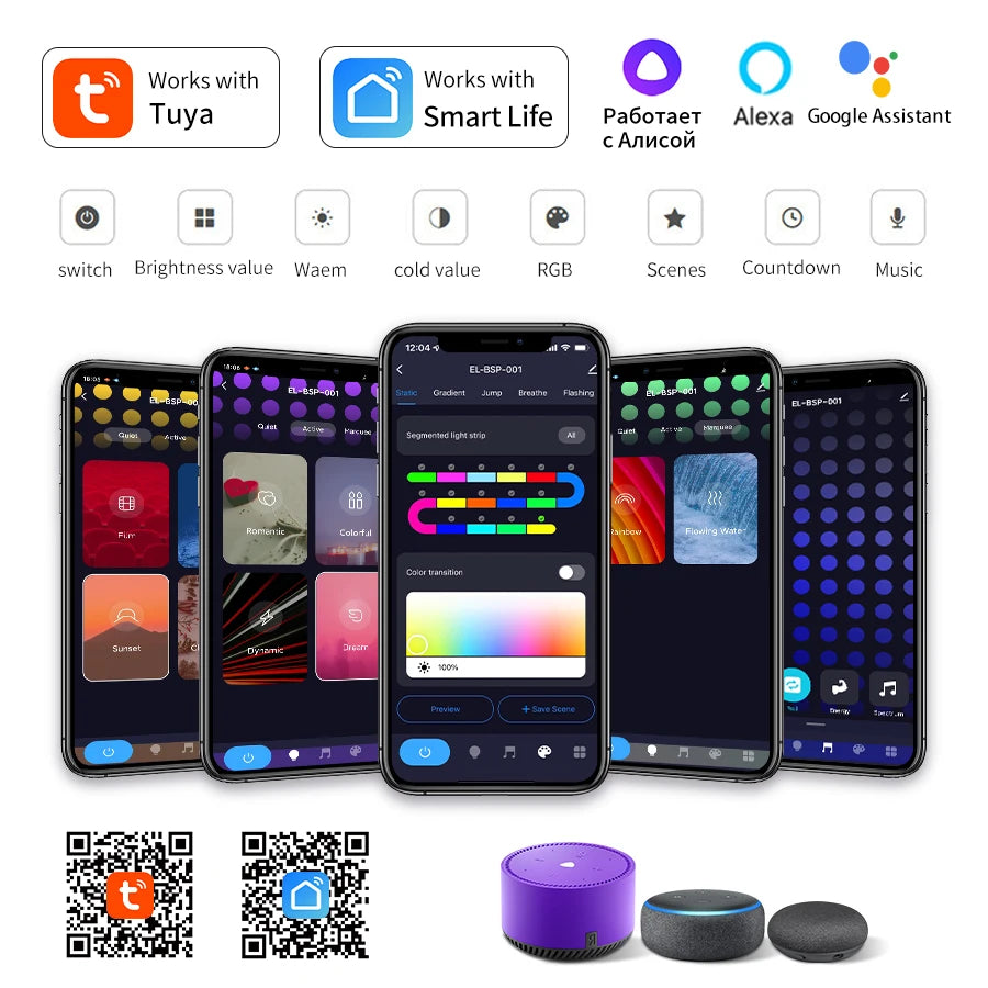 Smart WiFi Control: Connect your tape lights to your home's WiFi network, and gain the power to control them with your smartphone or voice commands through popular voice assistants like Amazon Alexa and Google Assistant. Adjust brightness, colors, and modes with ease.