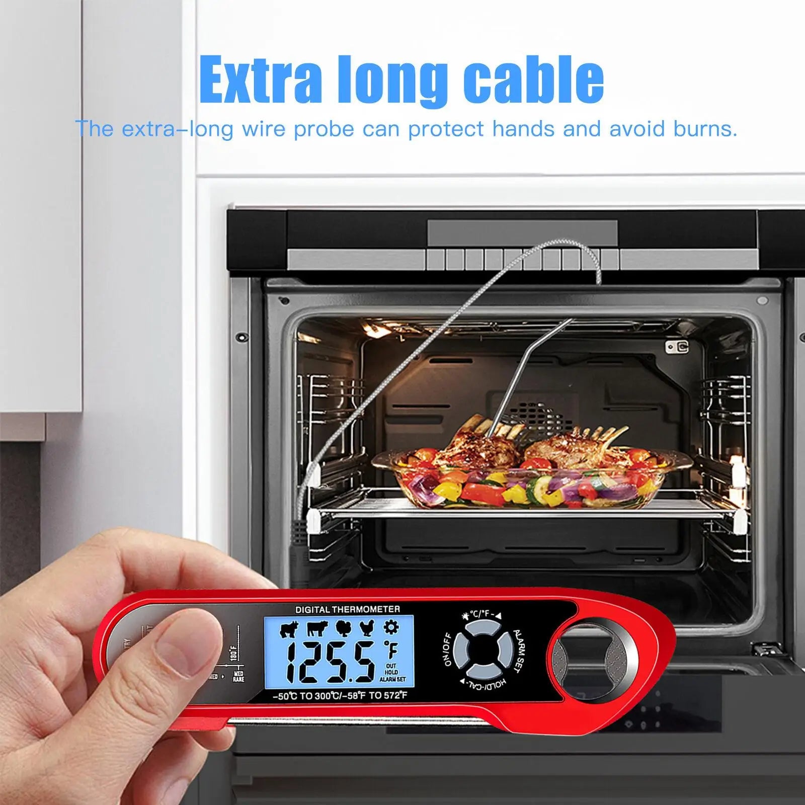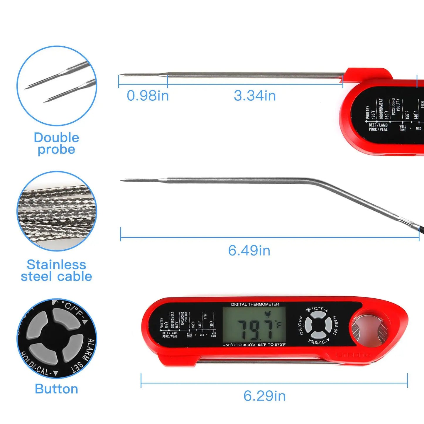 Dual Probe Thermometer: Different from the traditional food thermometer probe design, our oven thermometer uses a dual probe design. You can use the probe in the oven, the wire is sturdy and allows oven door to close completely.