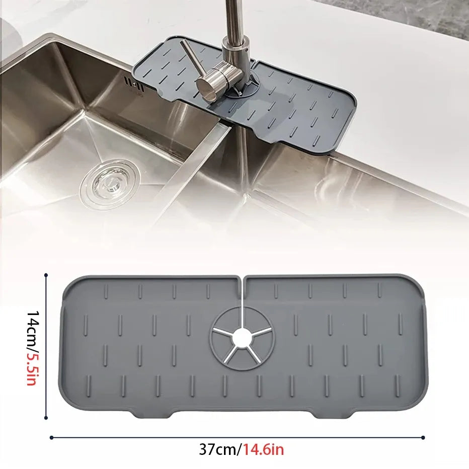 MULTI-FUNCTIONAL: It's not just a faucet mat, you can also put your toothbrush, cup, hand sanitizer and dish soap on this Faucet Silicone Drain Pad and use it. It can also be nice a small organizing pad.