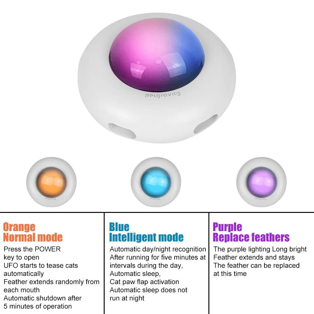 USB charging: USB charging is convenient, durable, and lasts long.Automatic steering when encountering obstacles. Automatically clean cat hair: Use the cleaning ring to clean the hair on the floor while the cat is playing.