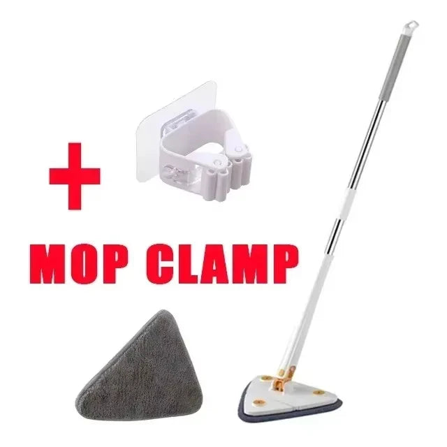 Efficient 360° Spin Cleaning Mop for All Surfaces: Transform your cleaning routine with this rotatable telescopic triangle mop, designed for effortless cleaning. Whether it's wet or dry use, this mop ensures powerful water absorption and an all-around clean, perfect for tackling floors, ceilings, and hard-to-reach corners. Its 360° rotating head provides full coverage, ensuring no spot is left untouched.