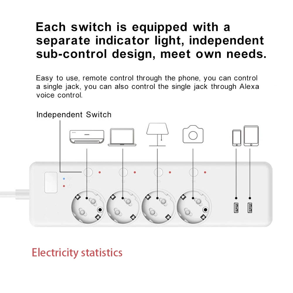 QUICK USE: EU plugs AC100‑250V WIFI, BLE intelligent power strip, while supporting and WIFI remote control, easy to use, fast to use.